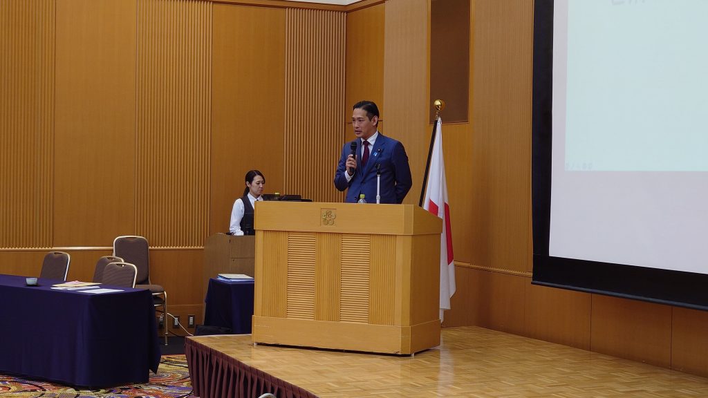 大会に先立ち、和歌山県選出の山本大地衆議院議員が講演、また休憩時間には女性局主催により震災復興チャリティーバザーを開催しました。
